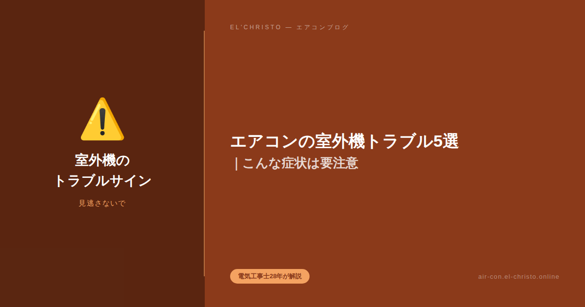 エアコンの不調の多くは室外機に原因があります。電気工事士として28年、現場でよく見かける室外機トラブルを5つ紹介します。