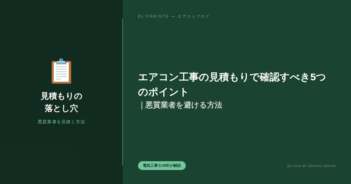 電気工事士として28年、残念ながらこういった相談を受けることがあります。悪質な業者に当たらないために、見積もり段階で確認すべき5つのポイントをお伝えします。